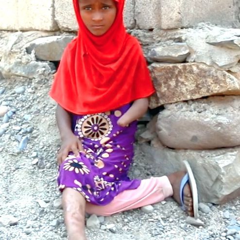 She was only little when a landmine exploded under her. Her right leg was badly damaged, the skin and muscles burnt and torn. Iman’s left arm was blown to pieces: her left hand was amputated above the wrist.