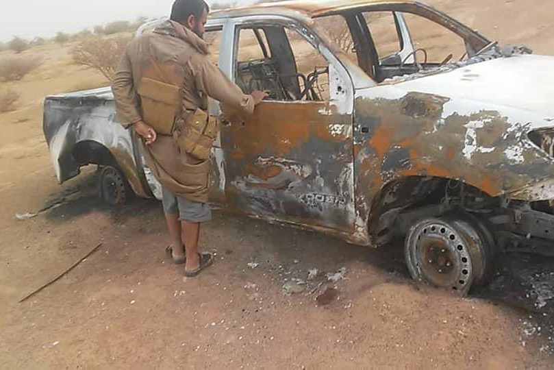 Sep142020 Al Jawf.. A Houthi landmine explodes at a civilian’s vehicle, and the militias set fire in it