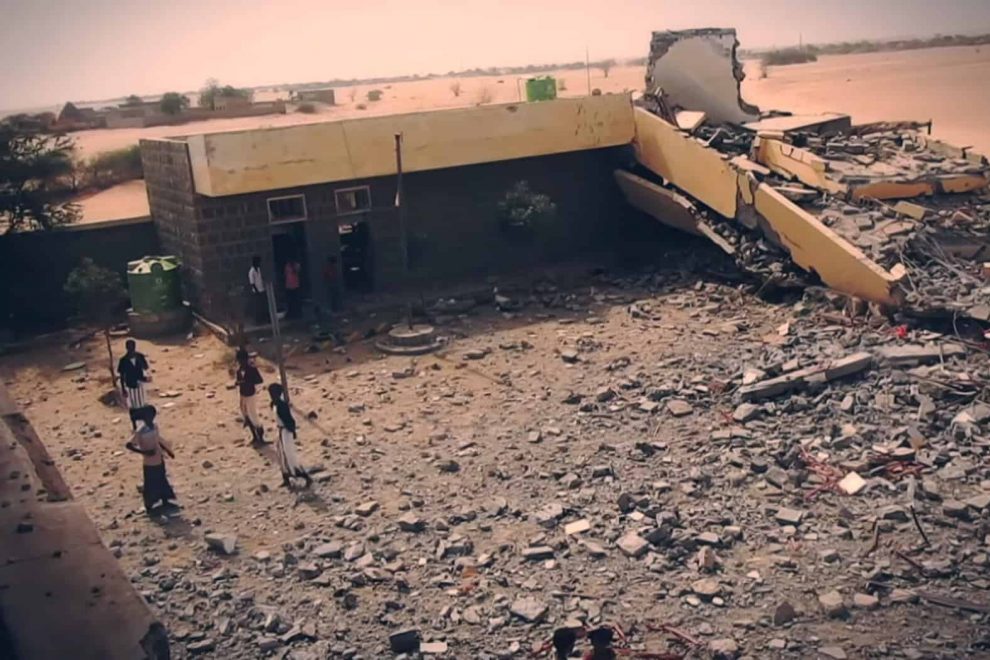 Hundreds of students are studying in the open after their schools were bombed in Haradh